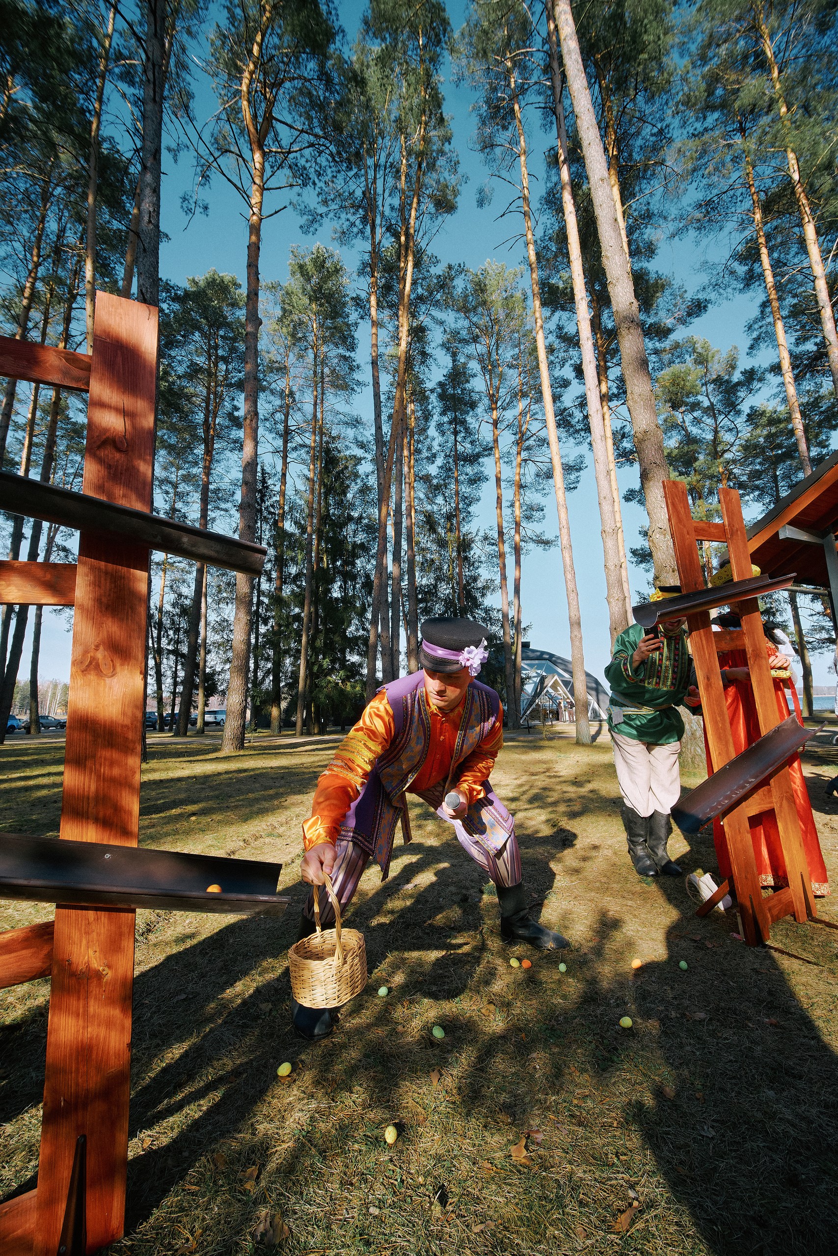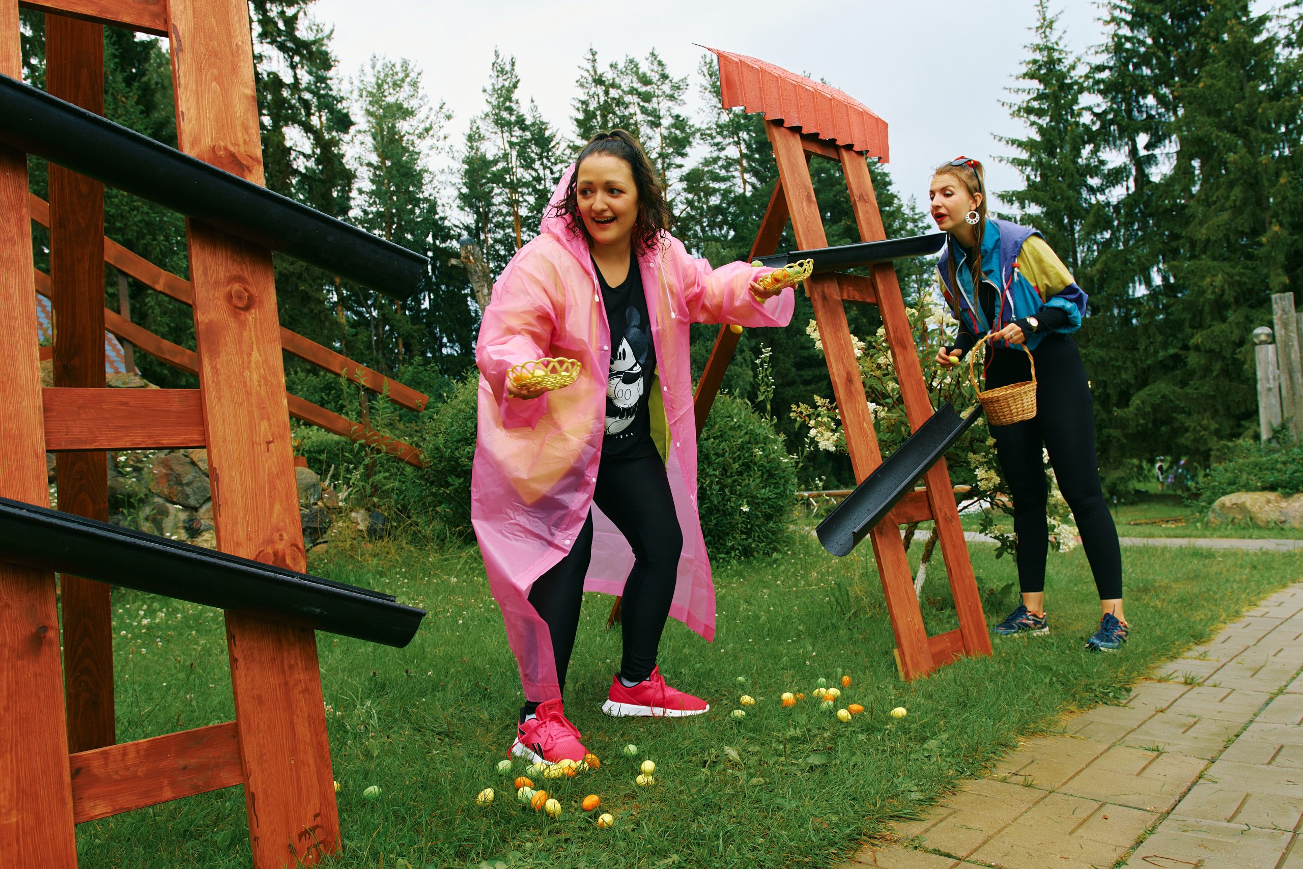 Данный вид развлечения на ловкость, где сможет проявить себя каждый участник команды. Задача участников – поймать все падающие яйца в корзину.
